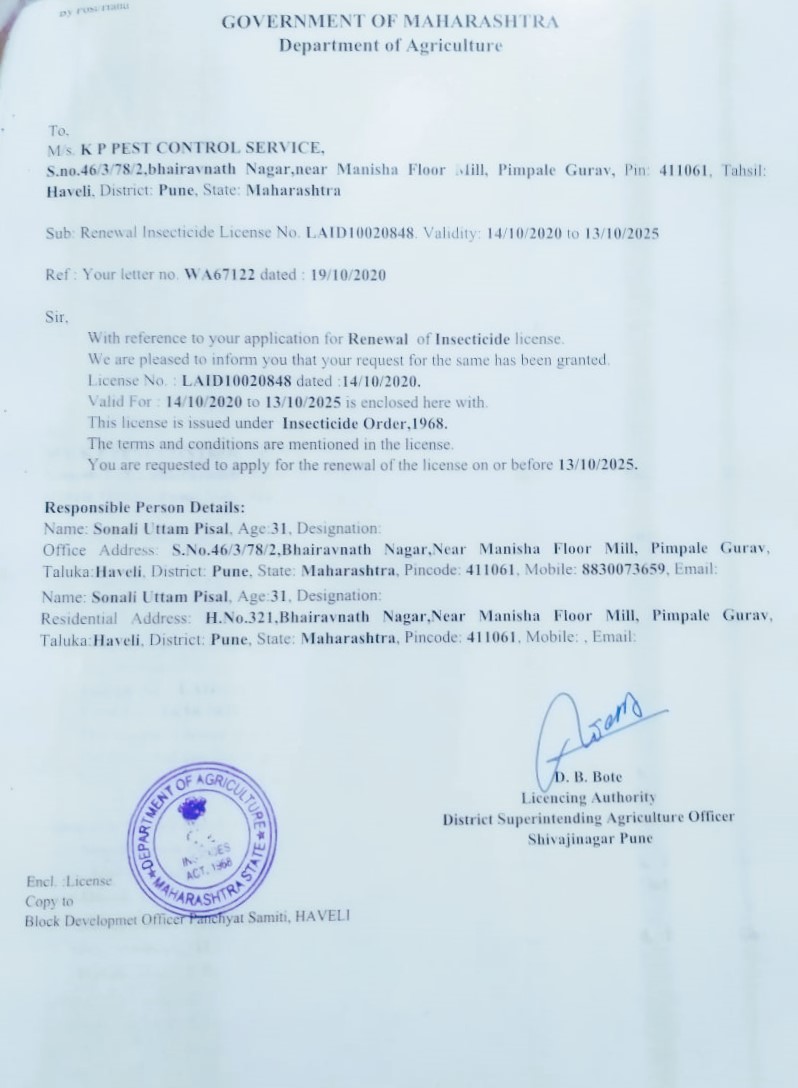 KP Pest Control Services Is A Leading Pest Control Company Based In Pune, Dedicated To Providing Top-Notch Pest Management Solutions To Residential And Commercial Clients. Our Mission Is To Ensure A Pest-Free Environment For Our Clients Using The Most Effective And Environmentally Friendly Methods.